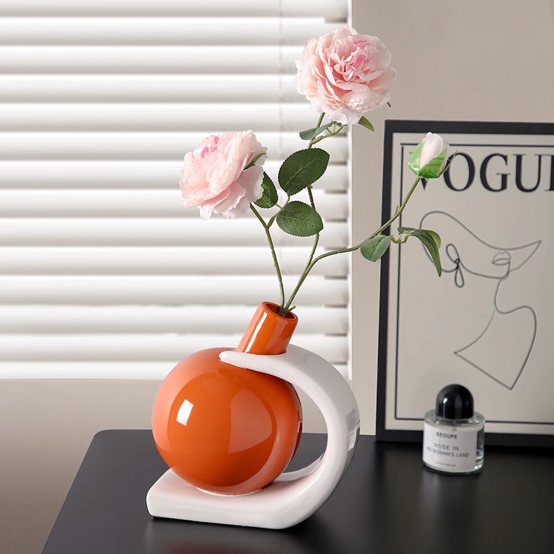 現代のシンプルな陶磁器のデスクトップの乾いた花の生け花の花瓶の置物