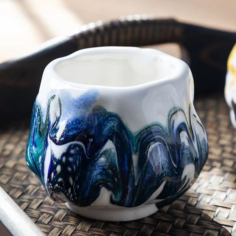 メーカー卸売り志野焼青花全手作りカップ主人杯品茗杯鉱瑪瑙鉱石入釉窯変