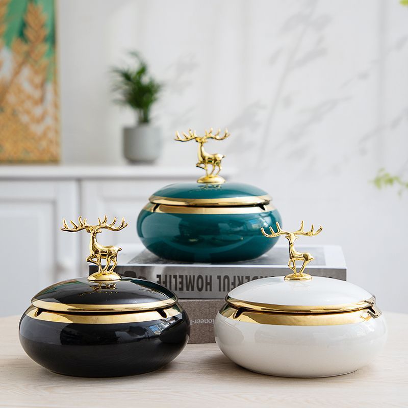 メーカー卸売創意灰皿軽豪華高級感蓋付き飛灰防止オフィス家庭用陶磁器ファッション置物