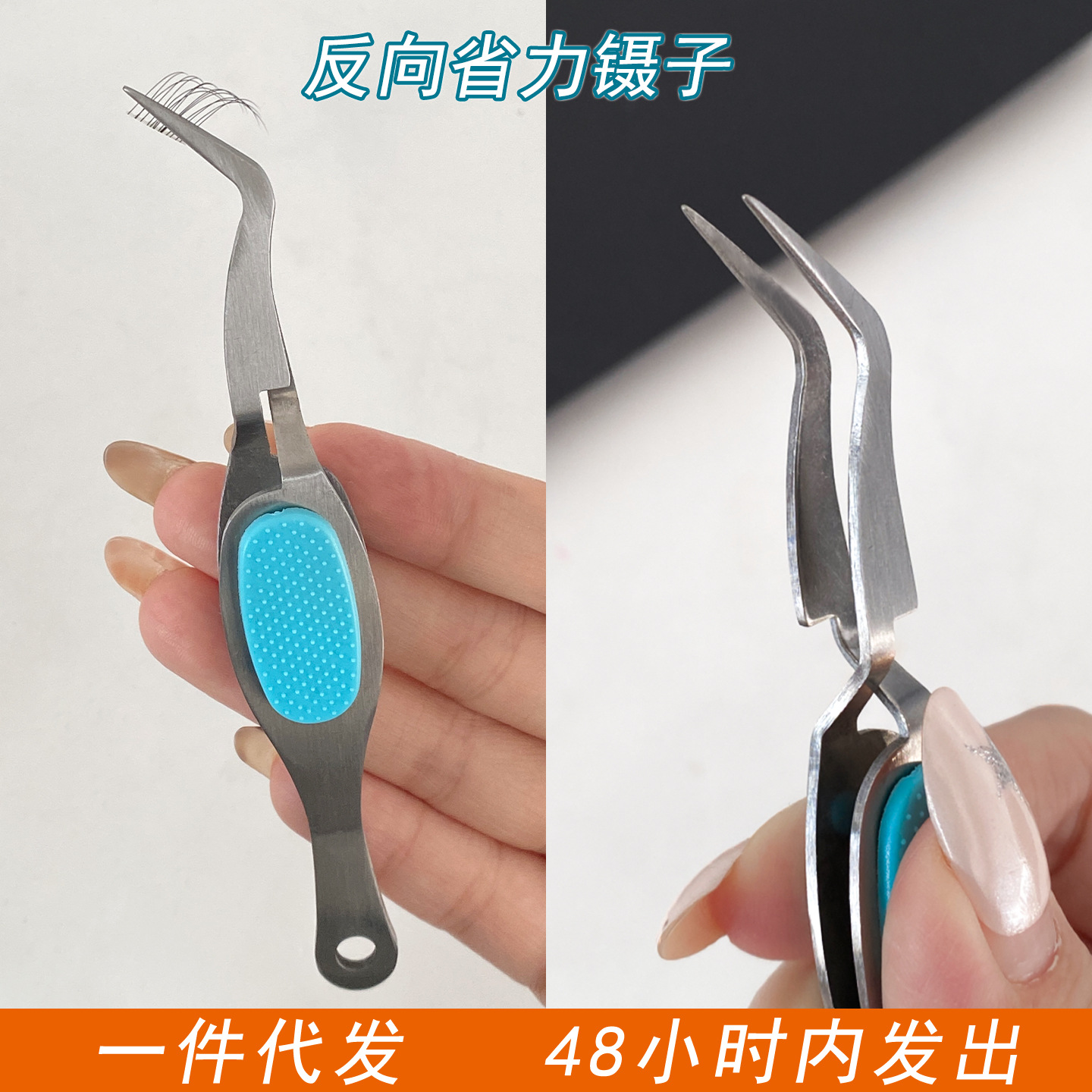 反向镊子省力夹的稳单簇分段式粘假睫毛镊X型多功能新手化妆美甲
