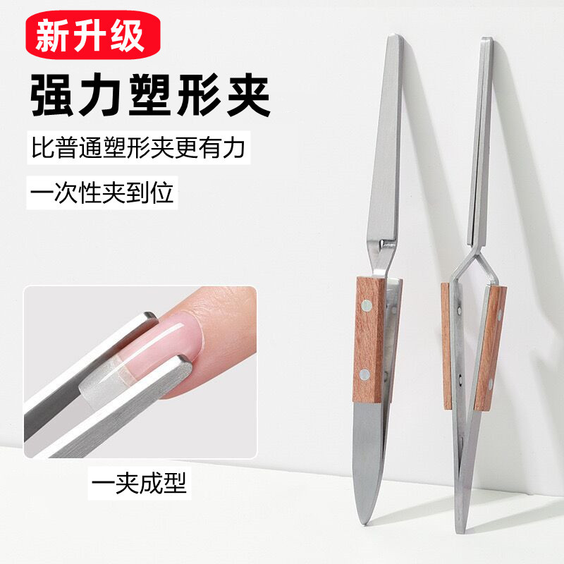 美甲强力塑形夹X型木头柄不锈钢延长水晶甲建构专用定型钳子工具
