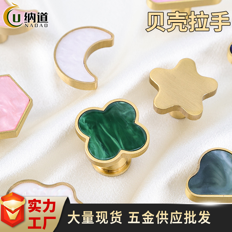 北欧五葉草花型貝殻小取っ手現代シンプルキャビネット金色透明引き出し服家具ドアハンドル