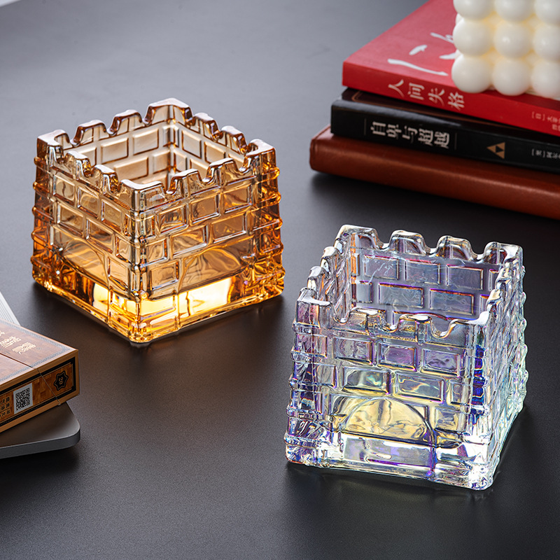 高級感のある城の灰皿のガラスの潮流の個性的なアイデアは灰の大きい灰皿の軽い豪華な家庭用の客間の置物を防ぎます。