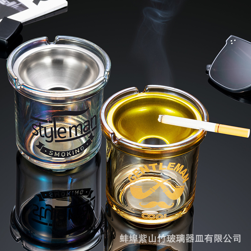 ステンレス灰皿蓋付き家庭用リビングルームins風創意個性潮流シンプルガラス灰皿飛灰防止
