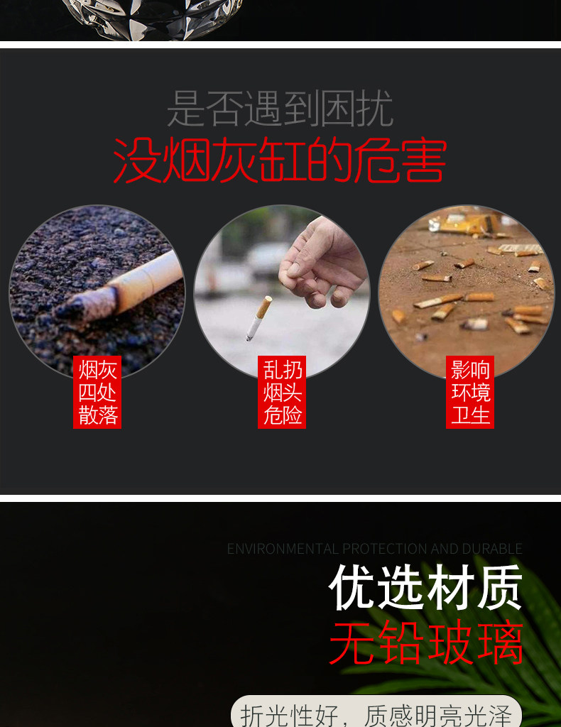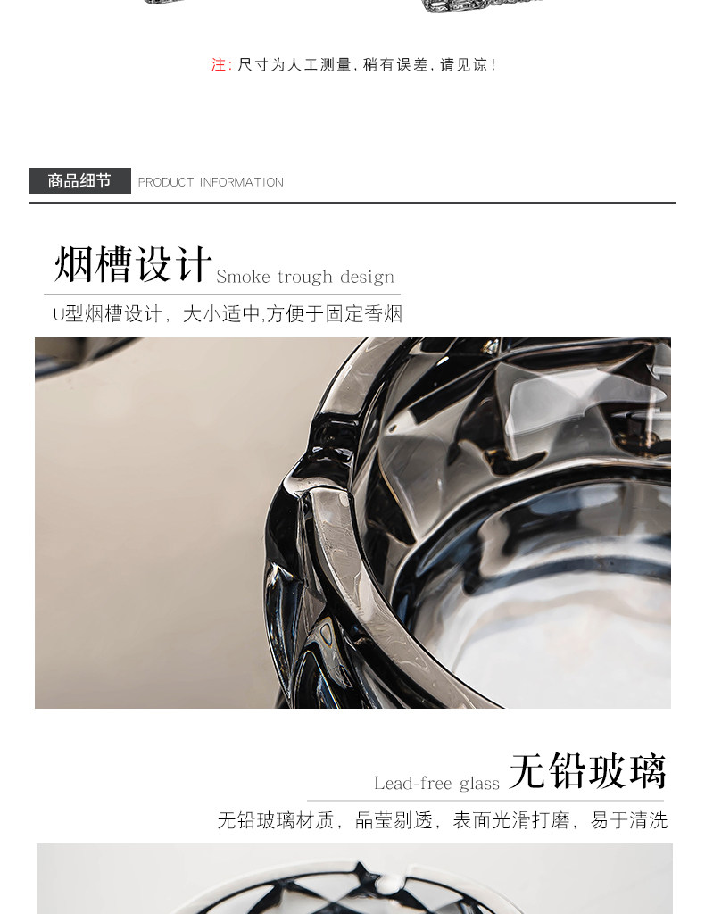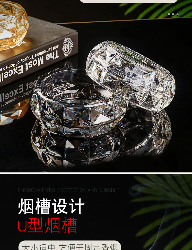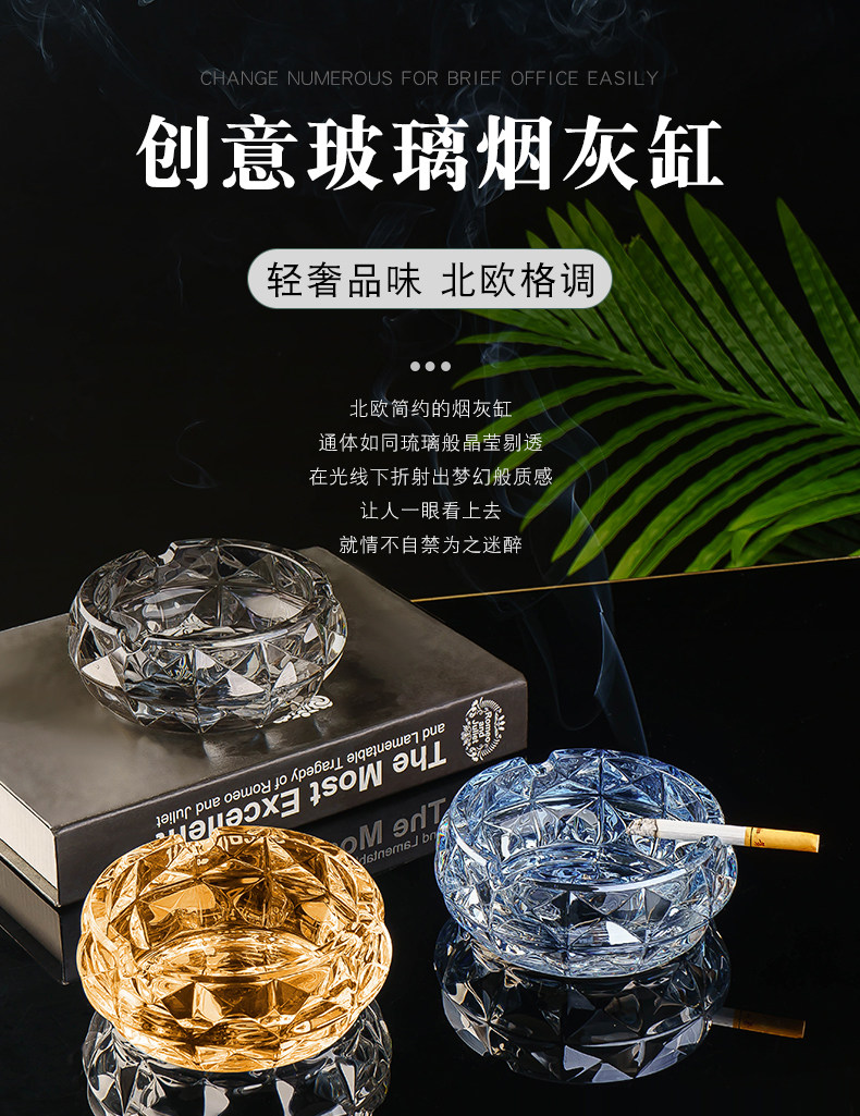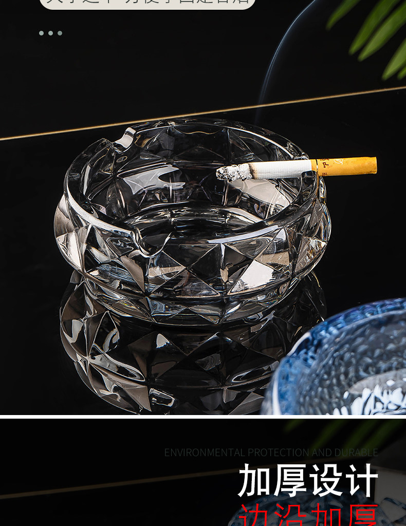 卸売り創意ガラス灰皿高颜値飛灰防止灰皿家庭用リビングホテル水晶灰皿