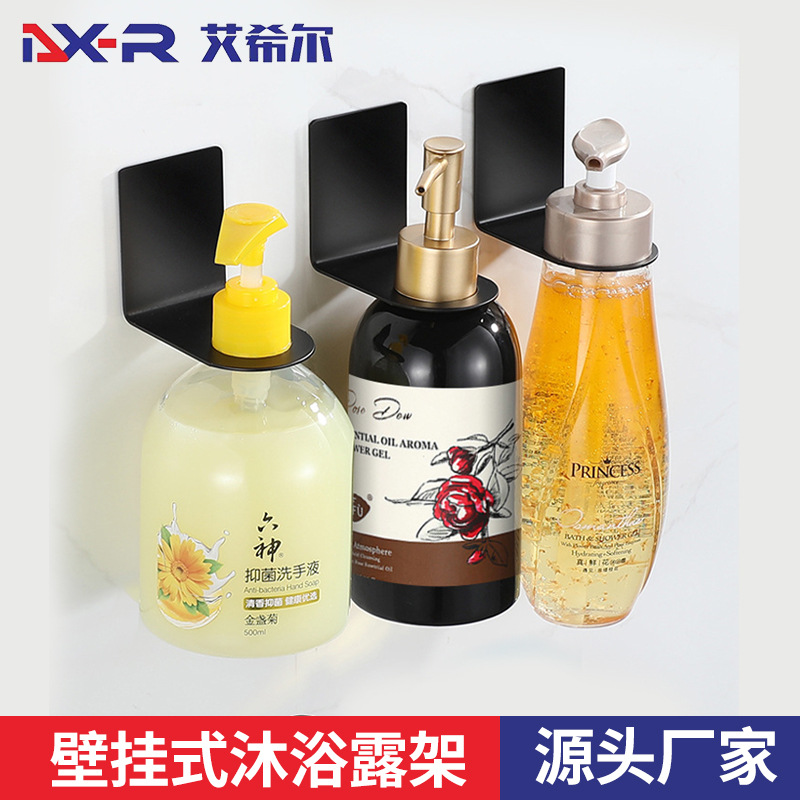 パンチフリーハンドサニタイザー壁掛けラックバスルームシャンプーシャワージェルボトルブラックハンガーホテルバスルームソープラック