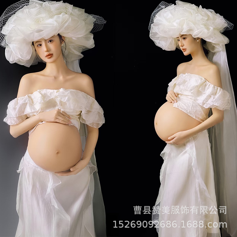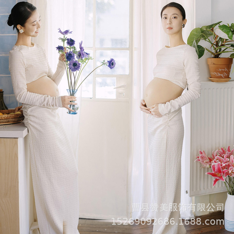 フォトスタジオの新しいスタイルのマタニティ写真撮影服、白いシンプルなスタイル、ハイエンドの妊娠中のママの屋内写真撮影、自宅での写真撮影