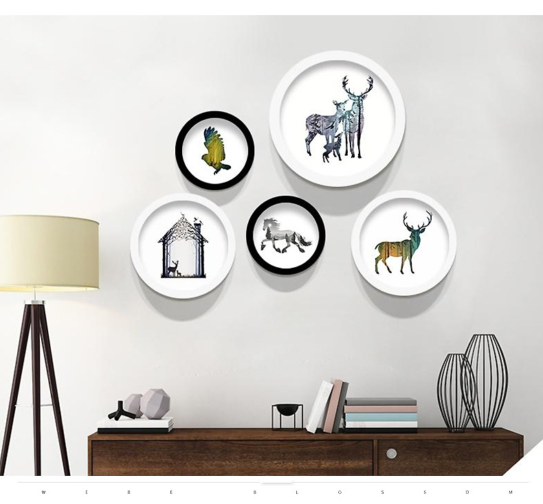 円形のテーブルを並べて壁を掛けます。フォトフレームを厚くします。