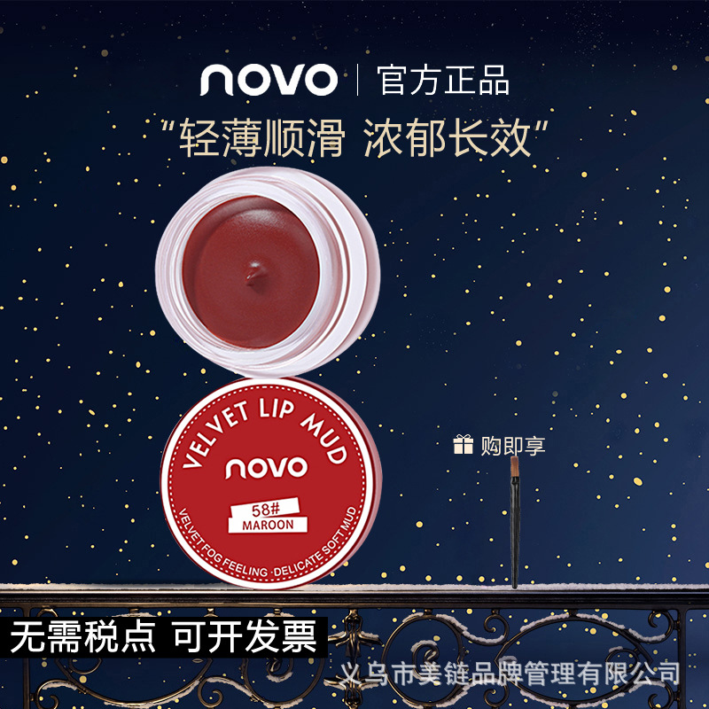 NOVO ムースゼリー缶詰リップマッドベルベットマットマットリップグレーズリップグロス手頃な価格の学生モデル novo リップマッド女性