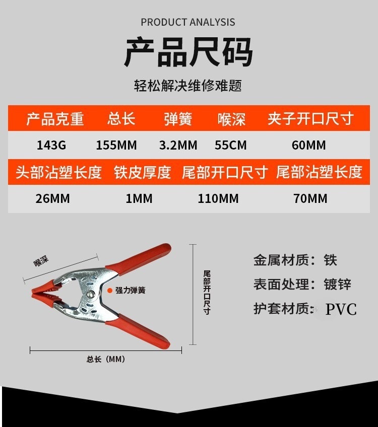 2インチ金属木工a字クリップdiy影布テントクリップスプリングクリップ外見亜鉛メッキ弾力大固定治具