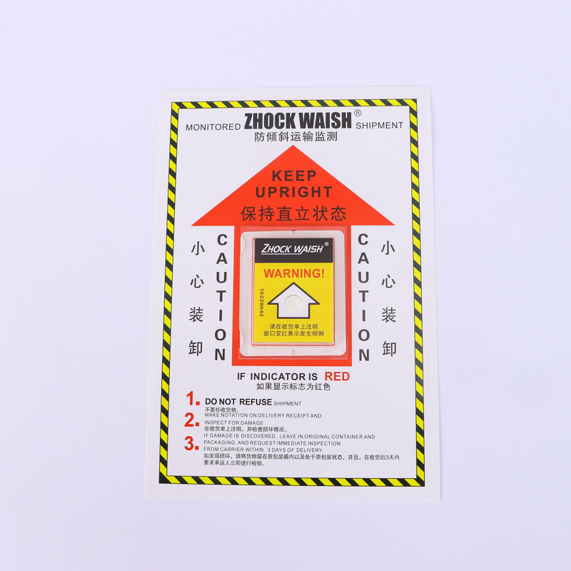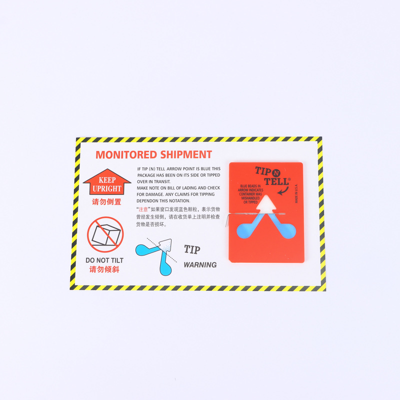 傾斜防止ラベル(中国語・英語)単一角度傾斜防止・衝撃防止表示物流安全輸送監視ラベル