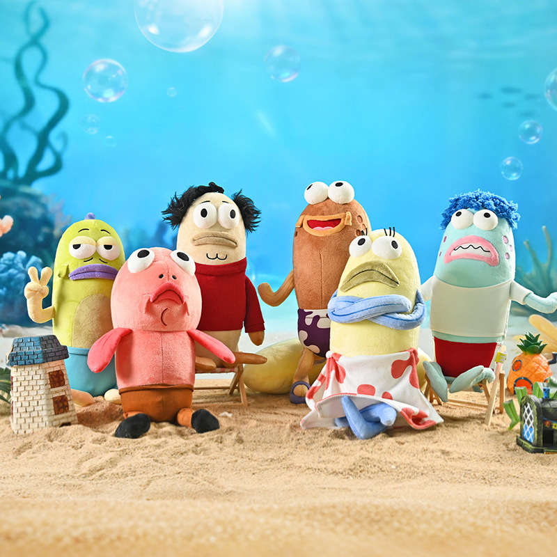 正版爆品海绵宝宝比奇堡路人鱼毛绒公仔抽象玩偶趣味生日节日礼物