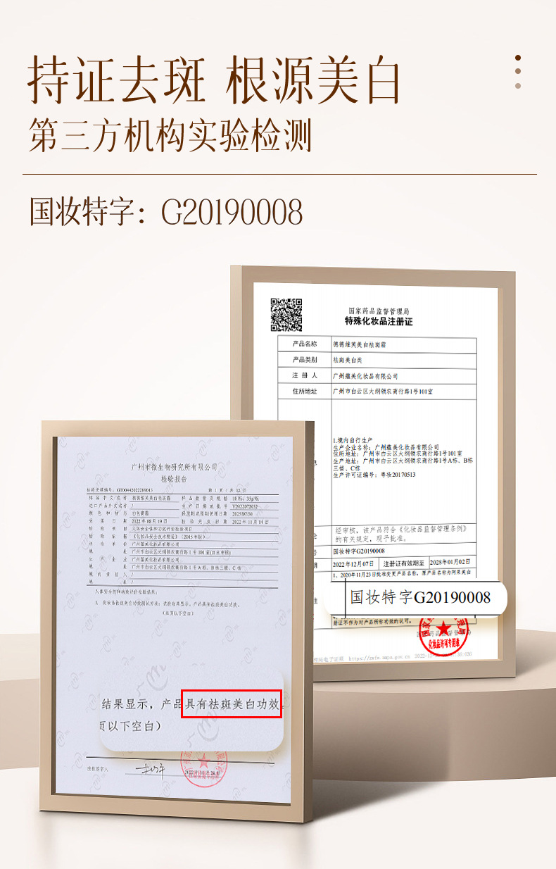 幽爽ジェンバイそばかす除去クリーム、国産化粧品特別認証取得、日焼け跡やそばかすを薄くし、肌の色を明るくするそばかす除去クリーム