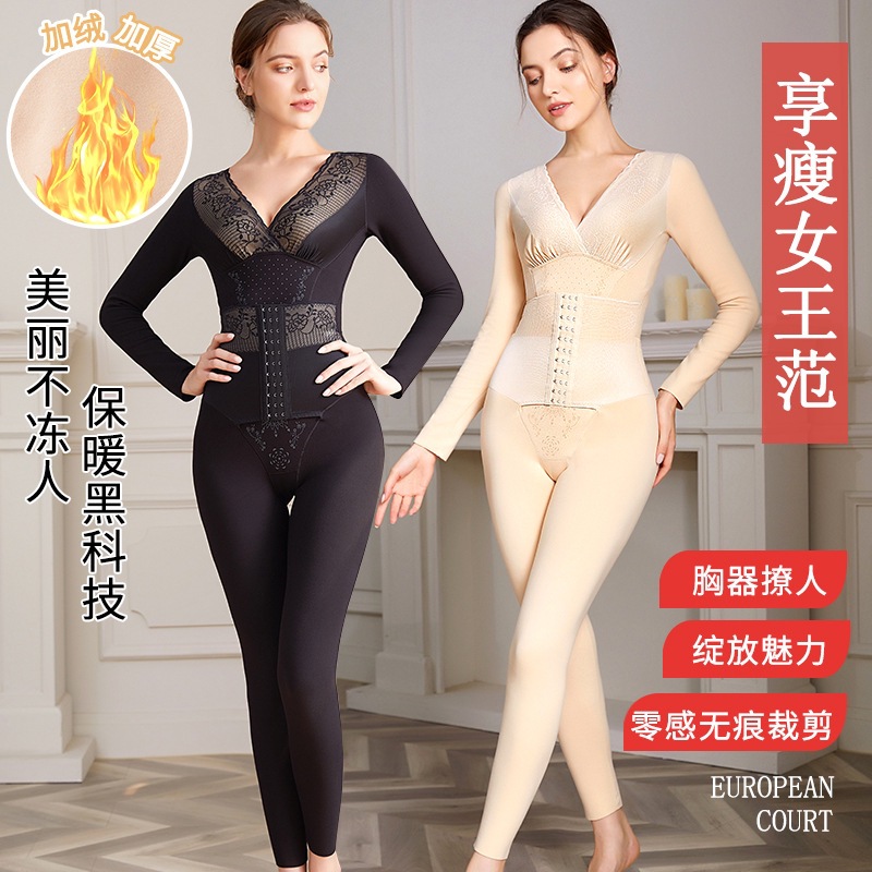 ボタン留めお腹引き締めワンピース型シェイプウェア、体型補正下着、全身シェイプ、体型管理、女性用、厚手で保温性のあるシェイプウェア