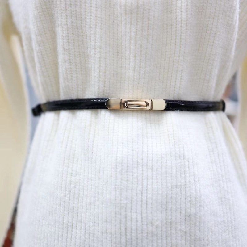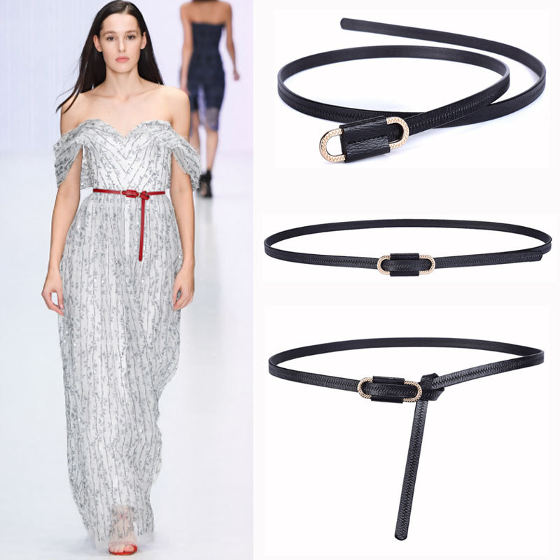 新型の多色の装飾のワンピースはセーターの細いベルトの女性を配合してpuの小さいベルトの韓国版のズボンのベルトを結びます。