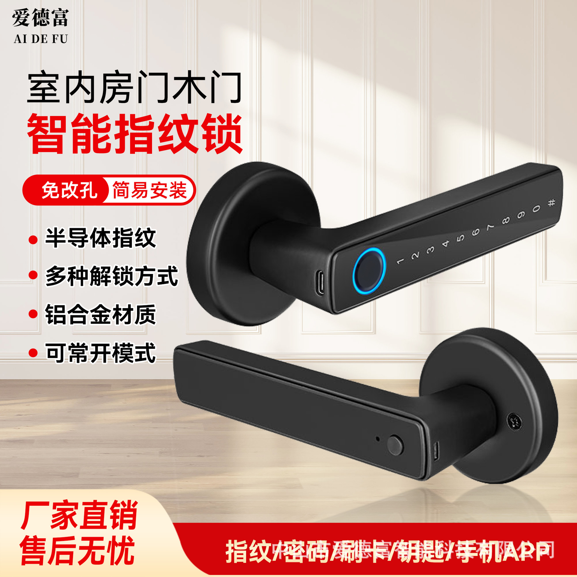 工場直販APPスマートドアロック、室内ドア指紋ロック、カード電子ロック、外国貿易越境電子商取引人気モデル