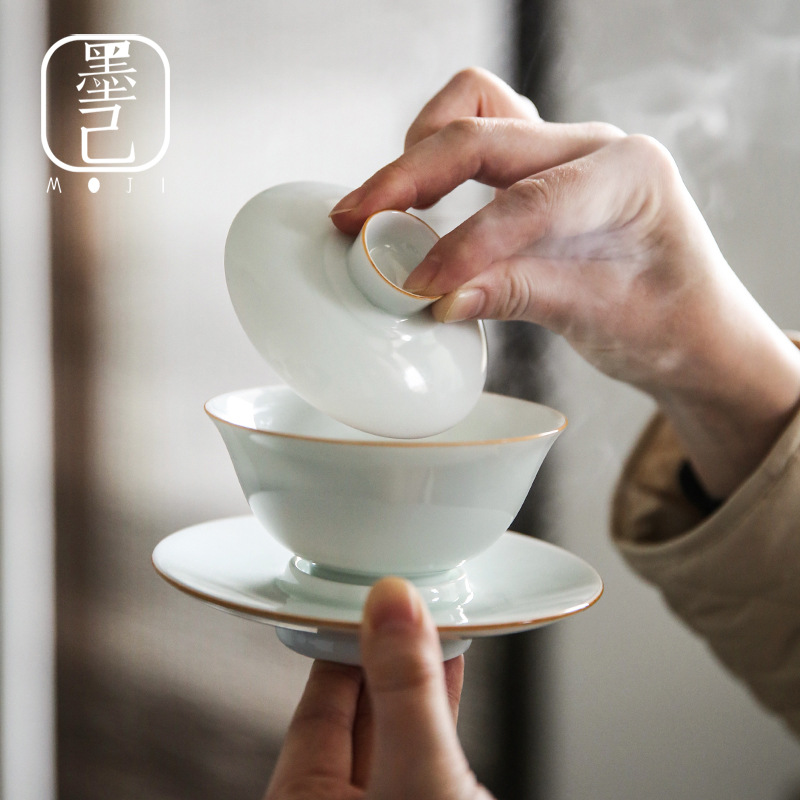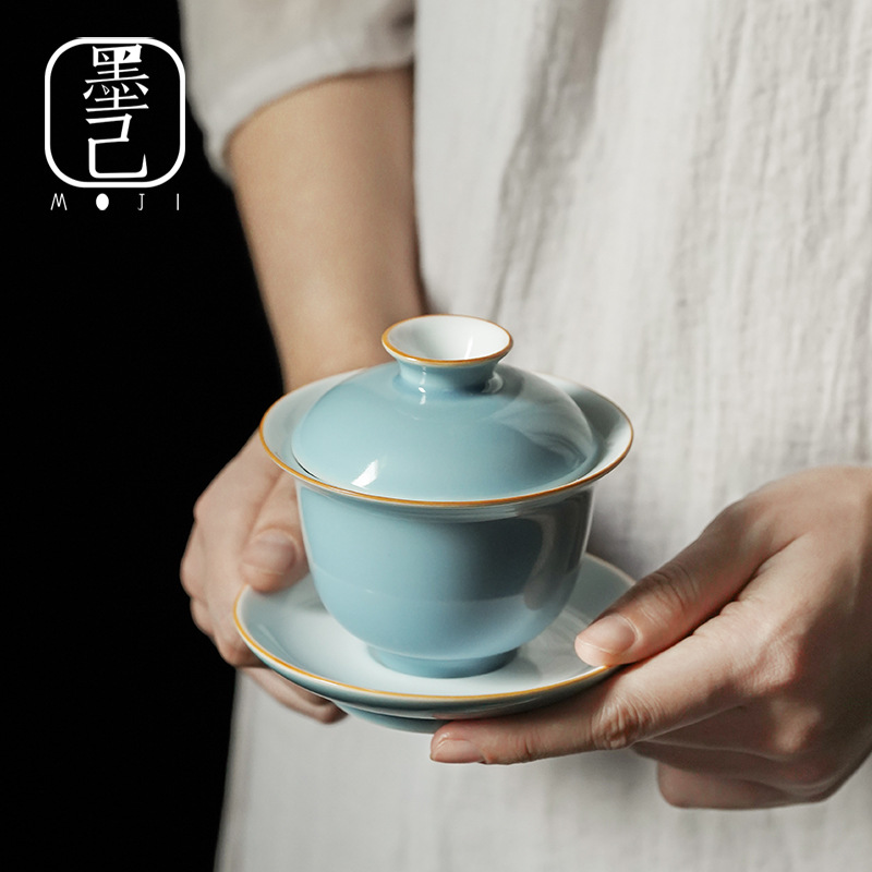 墨己 _ 青釉陶磁器三才蓋碗カンフー茶器天青泡碗敬茶碗大サイズ