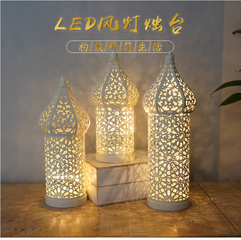 跨境新款中东阿拉伯led电子蜡烛灯 城堡灯笼风灯家居装饰摆挂件
