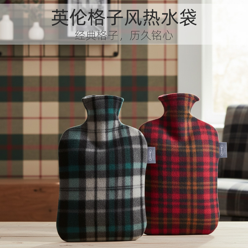 时尚新款松紧口橡胶内胆浪漫花色格子热水袋注水暖手宝源头厂家