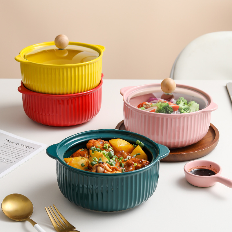 蓋付きインスタントラーメンボウル、双耳セラミックボウル、家庭用サラダボウル、インスタントラーメンボウル、大きなスープボウル、北欧スタイルの食器卸売