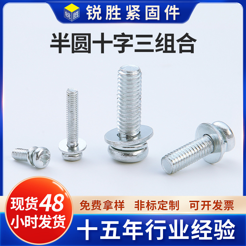 炭素鋼十字丸頭三組み合わせねじ亜鉛メッキ半円帯平弾パッド組み合わせねじm3m4 m 6m 8m 10