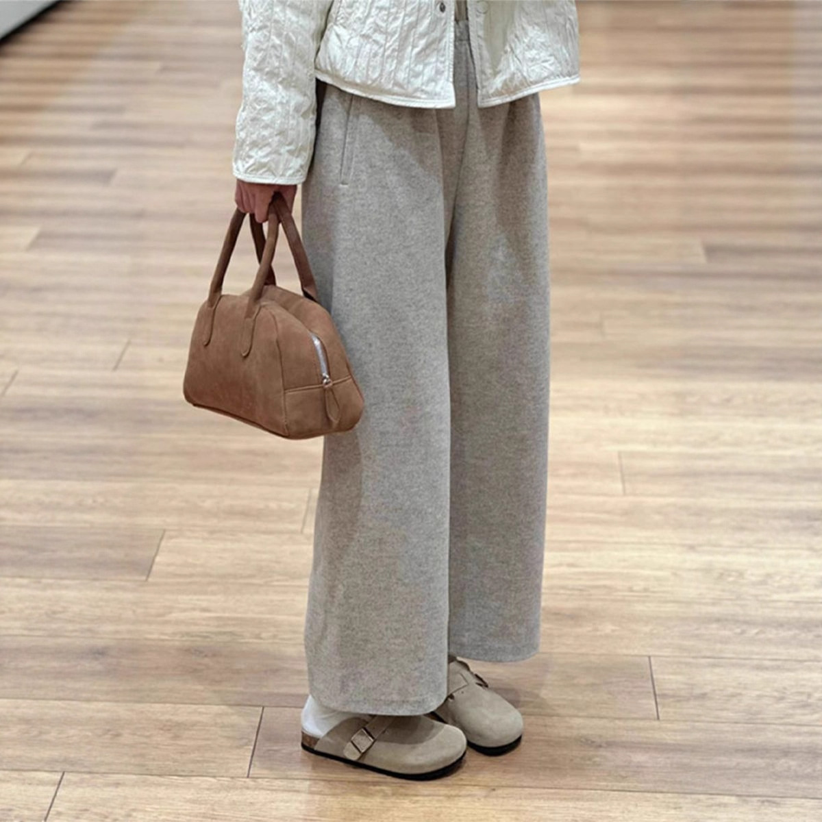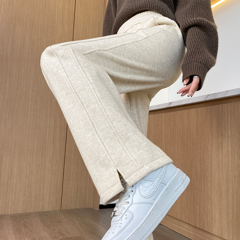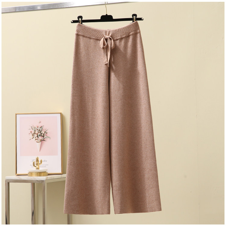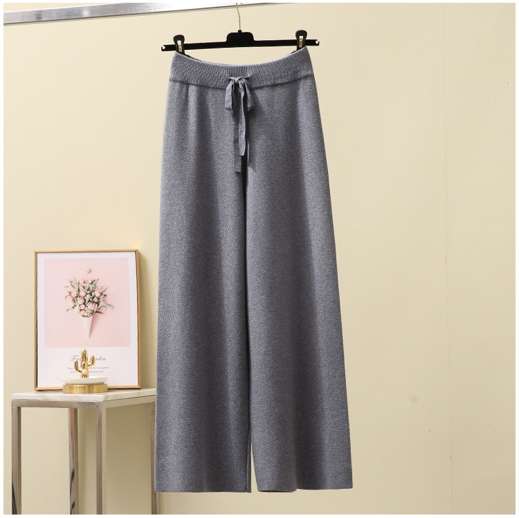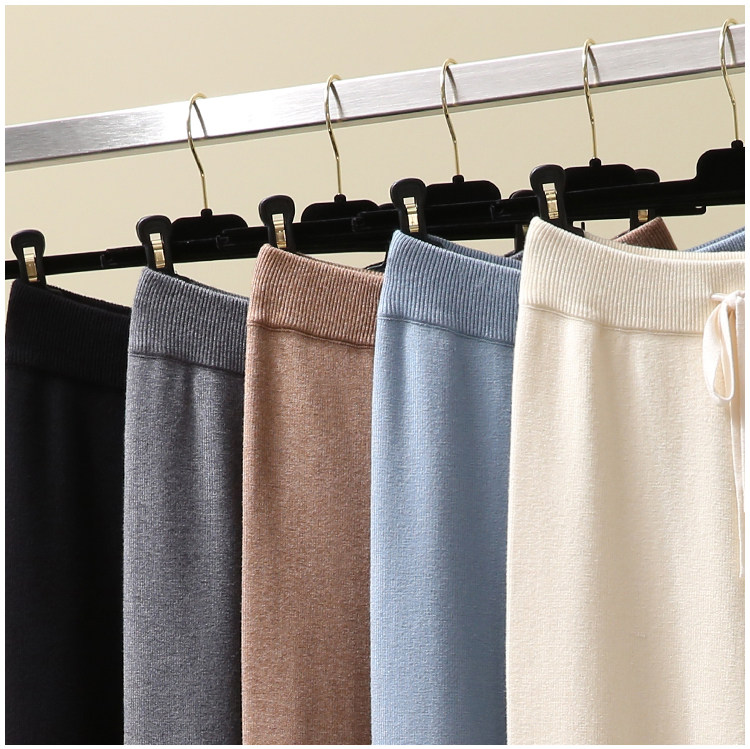 試着室2024秋のカジュアルな柔らかいリブ編みのズボンのゆったりした広脚のストレートカジュアルなズボンの女性470173
