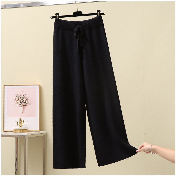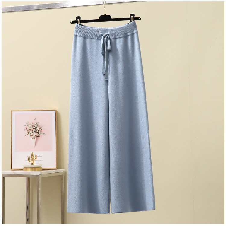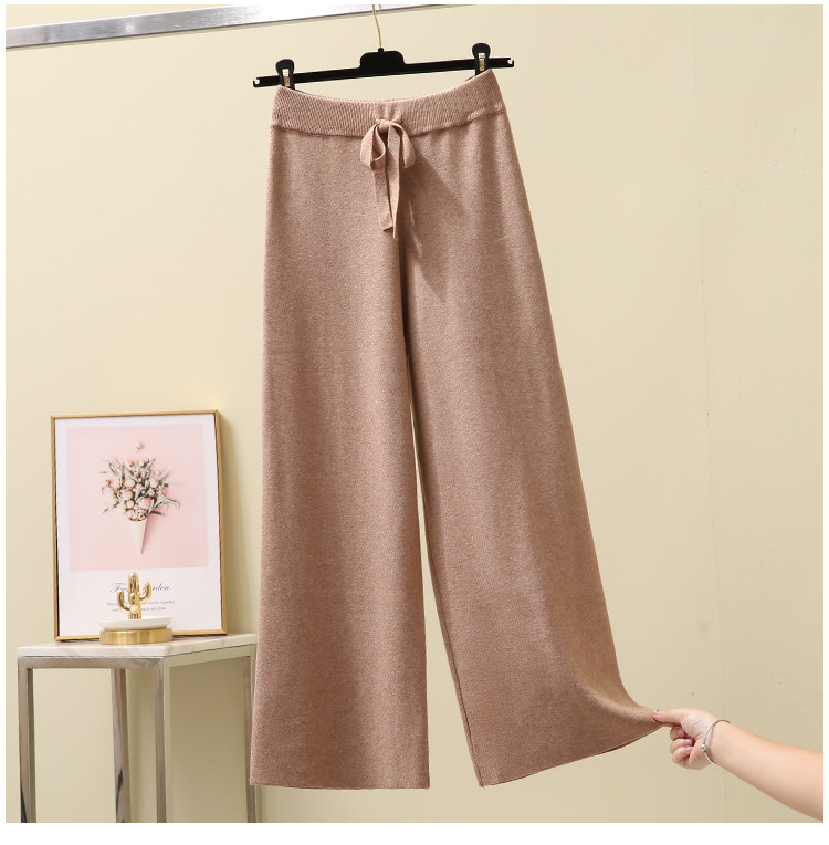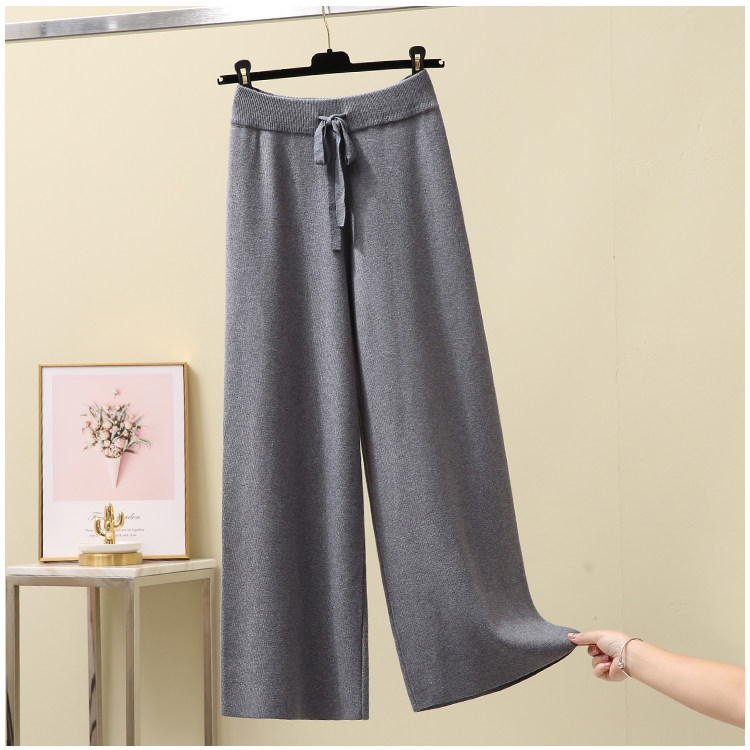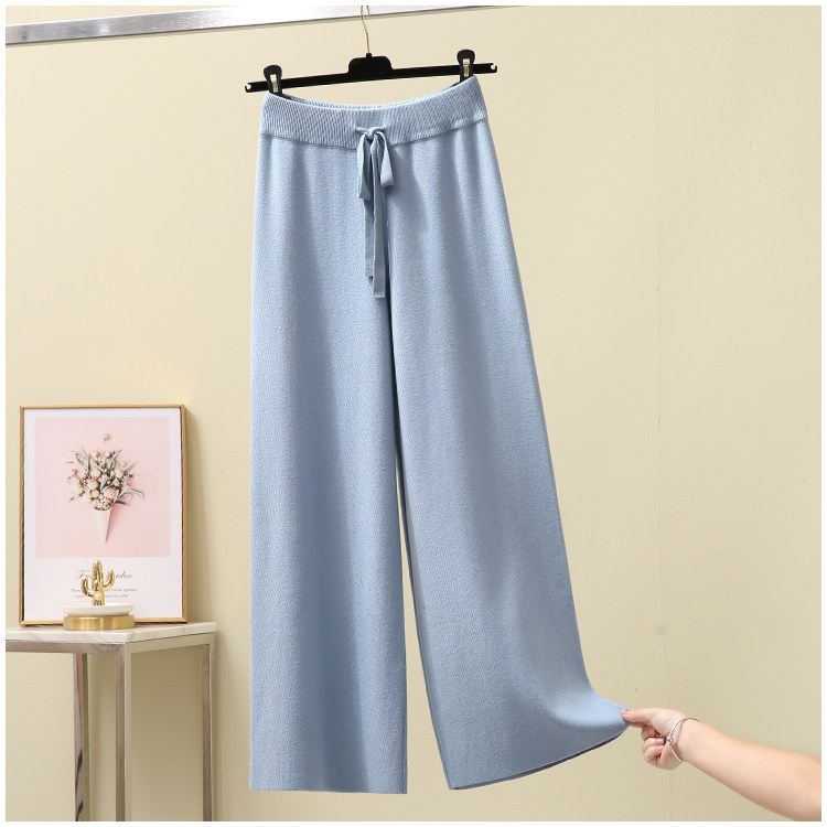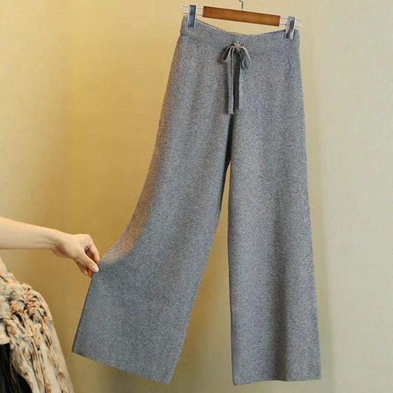 秋冬新款高腰坠感针织阔腿裤女慵懒休闲九分裤加厚直筒裤毛线裤子