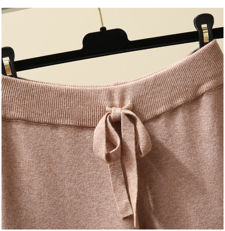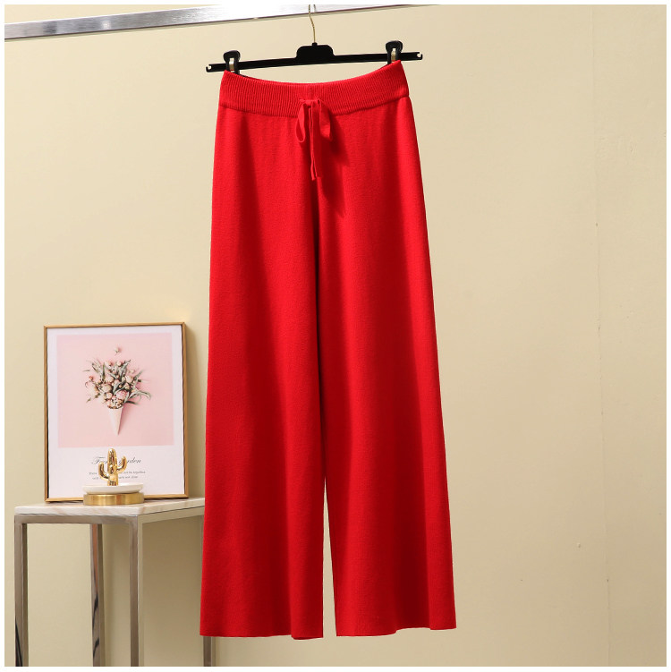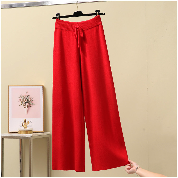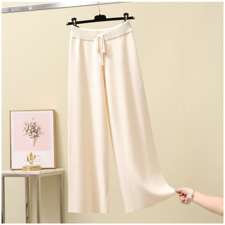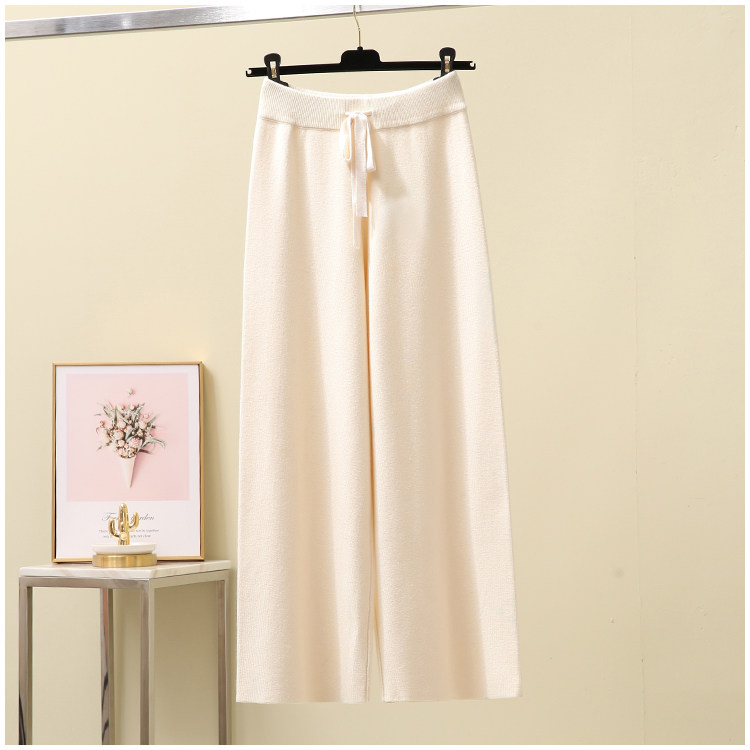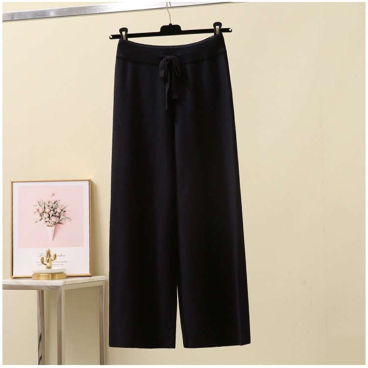 秋冬新款高腰坠感针织阔腿裤女慵懒休闲九分裤加厚直筒裤毛线裤子