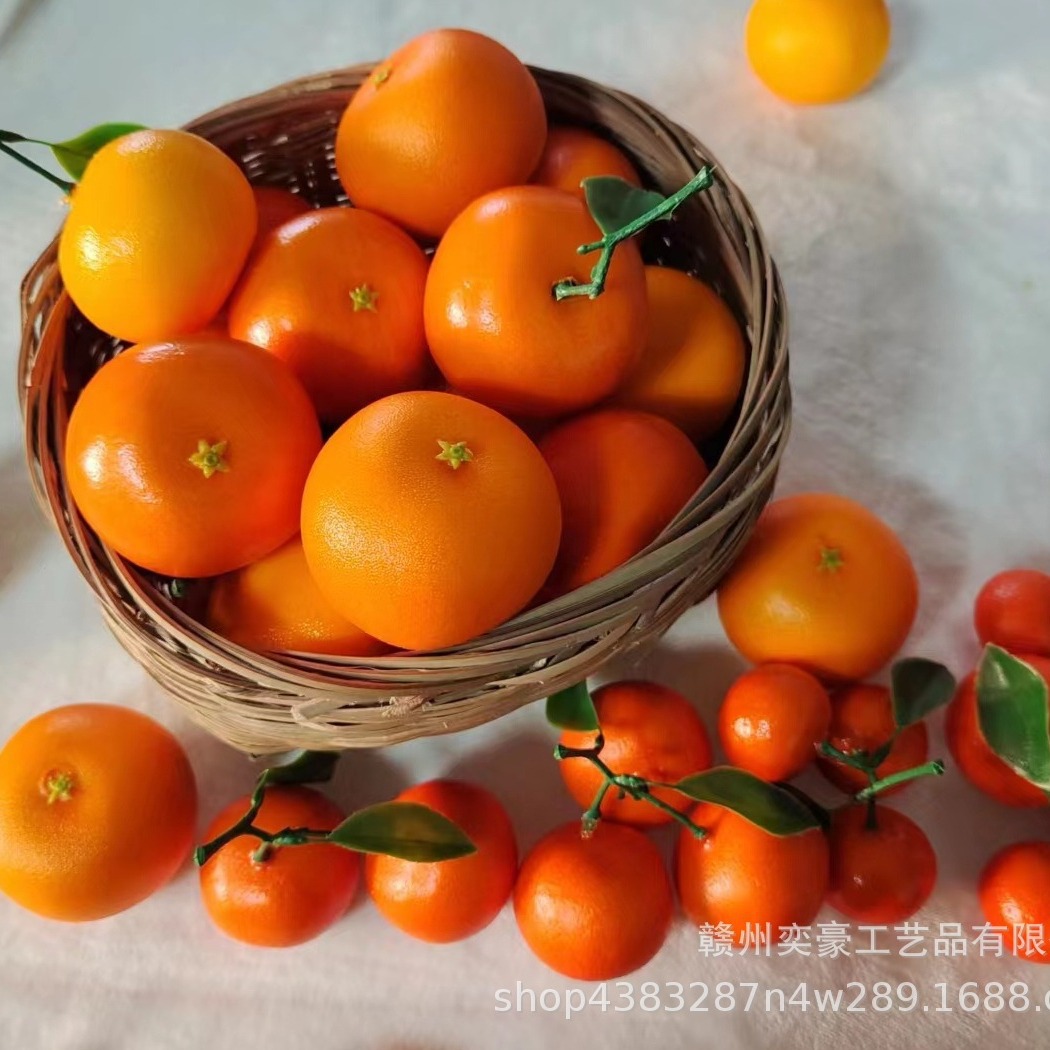 擬似果物模型偽人工沃柑子みかん道具店には葉付き砂糖オレンジサンプル装飾が展示されている