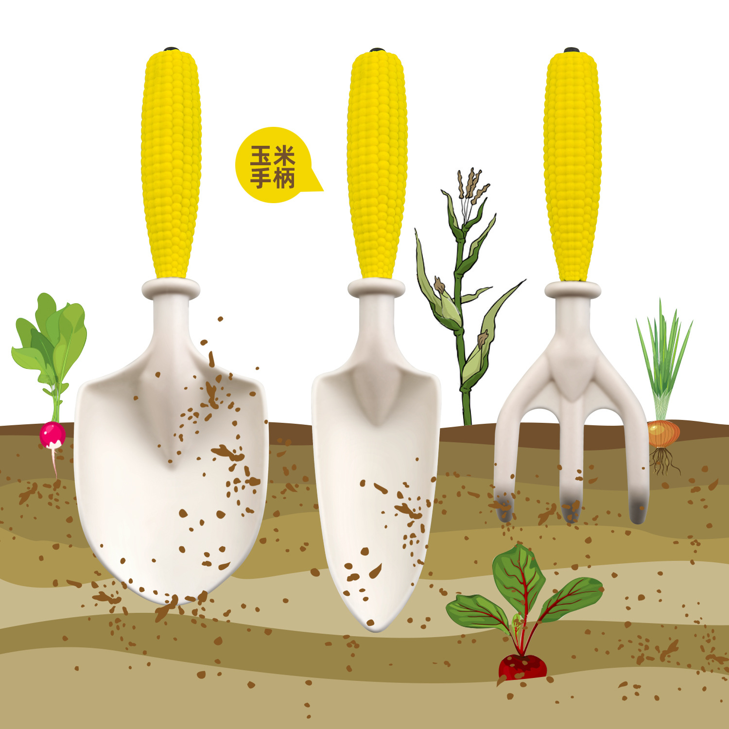新品子供用ガーデン植栽道具セット土掘りシャベル目盛先シャベル熊手トウモロコシ種花3点セット