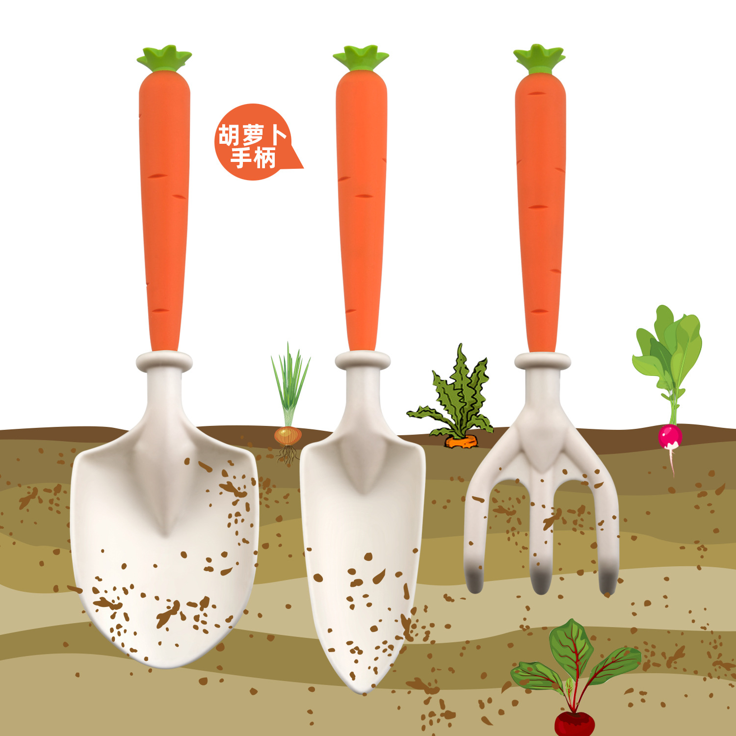 新商品子供用ガーデン植栽ツールセットニンジン土掘りシャベル目盛先シャベル熊手種花3点セット