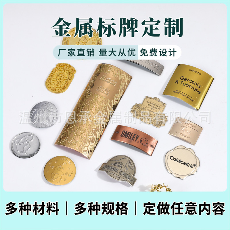 五金冲压玻璃瓶香水标复古铭牌商标LOGO金属标牌立体浮雕香水铭标