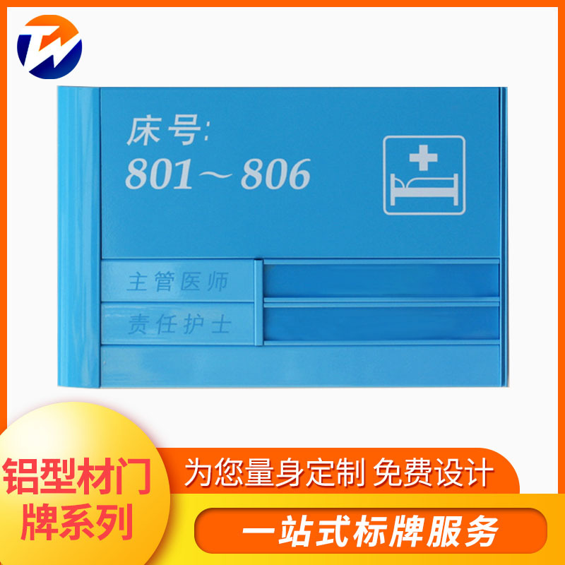アルミ合金製病床標識、病院標識、両面印刷標識、片面印刷病棟標識、塗装シルク印刷標識