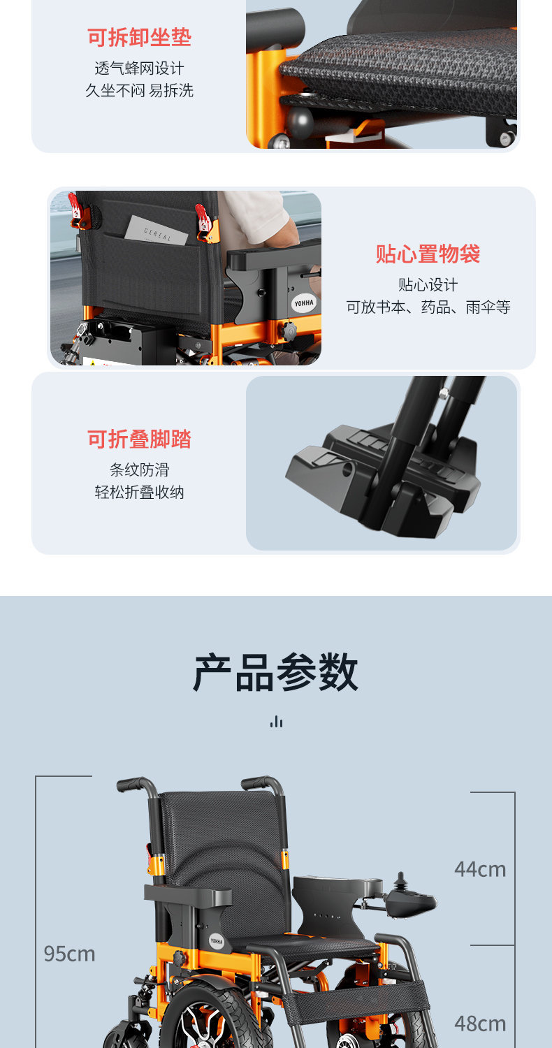 炭素鋼フレーム電動車椅子、静音空気入りタイヤ、150kg高耐荷重、防錆加工、頑丈な素材を使用した車椅子