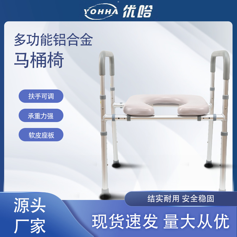 高齢者と妊婦向けの滑り止めトイレチェア、厚みのある耐荷重ステンレススチールフレーム、幅広の滑り止めシャーシ、横転防止トイレチェア