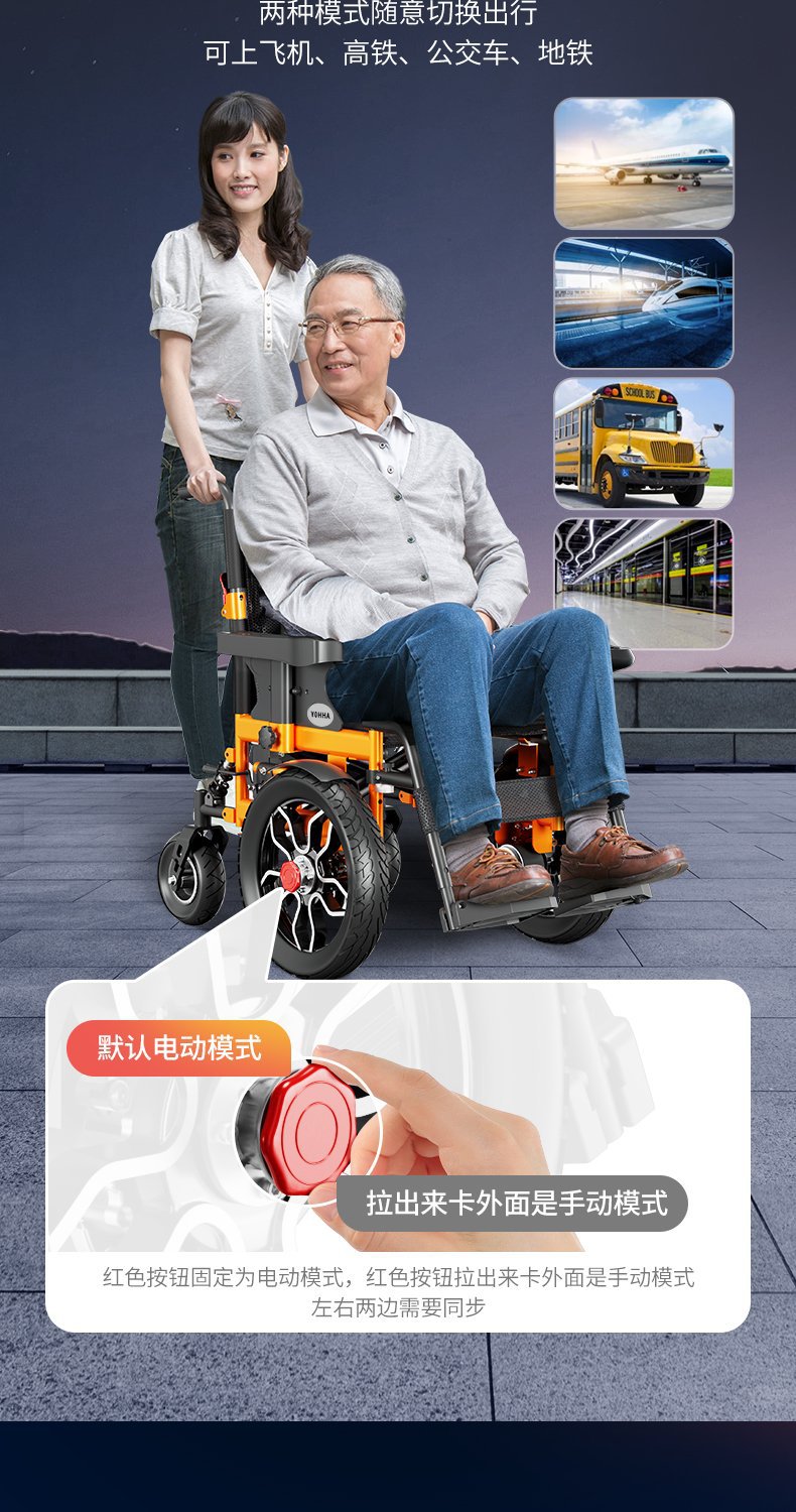 可上飞机人体工学电动轮椅智能小型轻便座椅老人旅游辅助代步推车