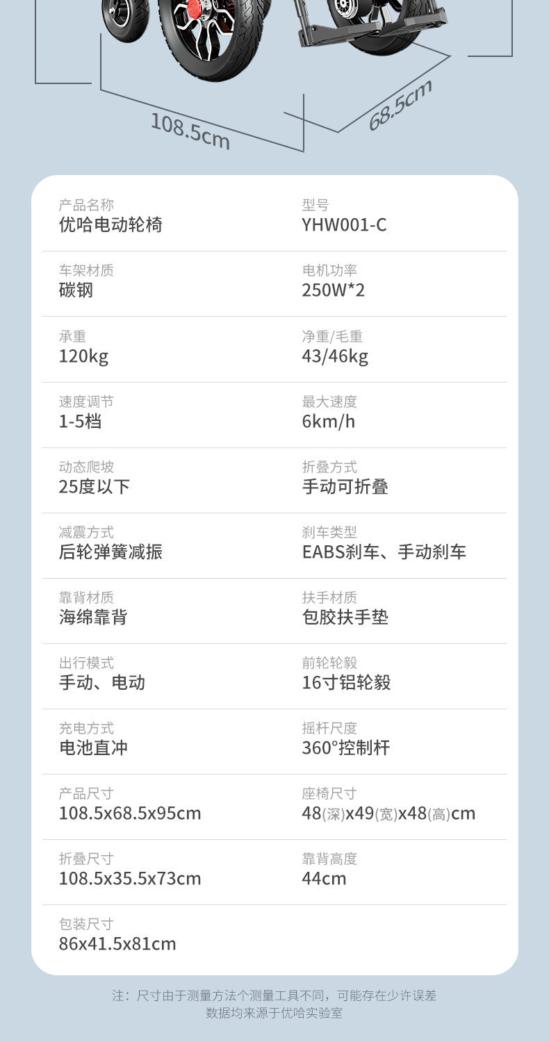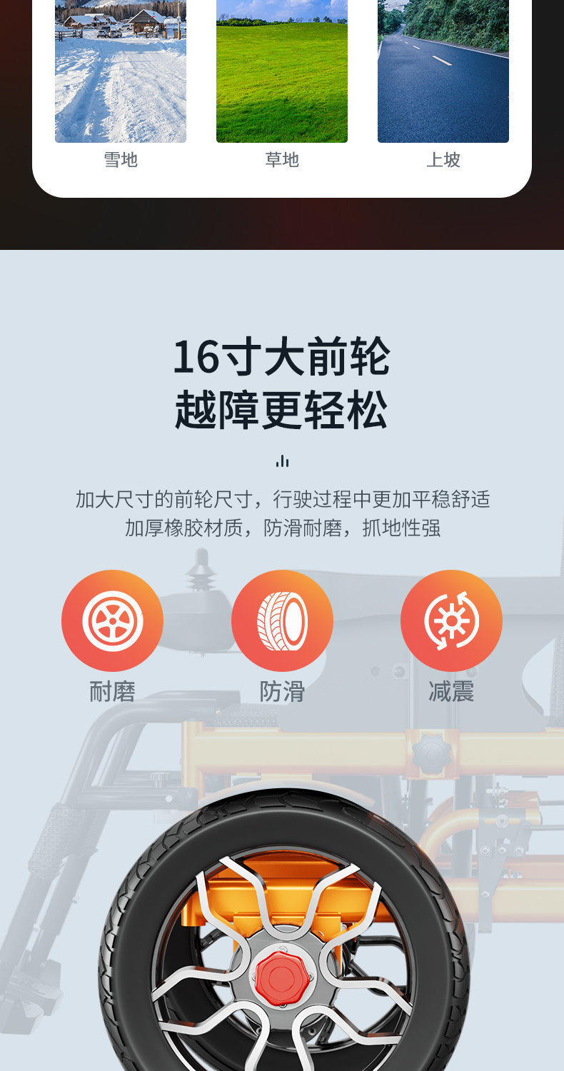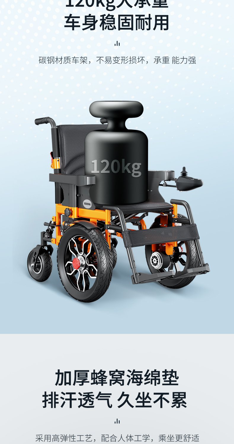 前輪が大きな炭素鋼製電動車椅子は障害物を乗り越え、坂を登る能力があります25 ° 空気入りタイヤは150kgの耐荷重で、オフロードでの歩行を支援します。