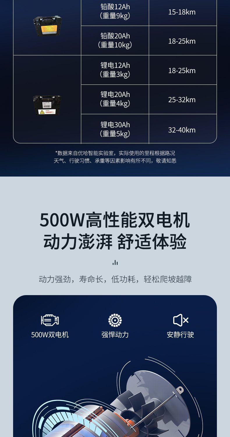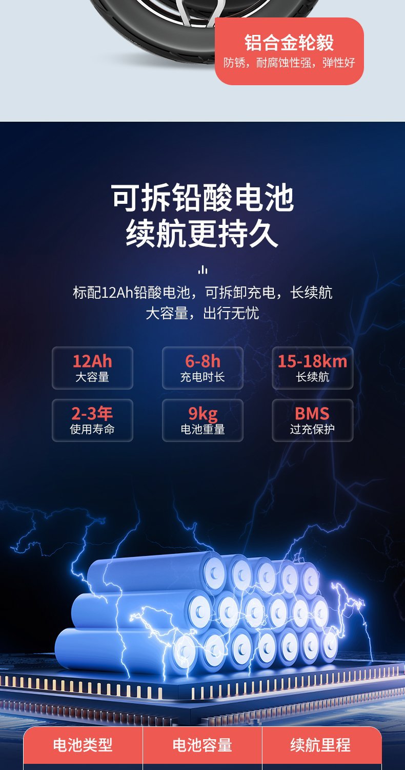 モデル番号 12AH鉛バッテリー[35マイル],20AH鉛バッテリー[65マイル],12AH リチウム電池 [55 マイル],20AH リチウム電池 [75 マイル],30AH リチウム電池 [100 マイル],40AH リチウム電池 [120 マイル]