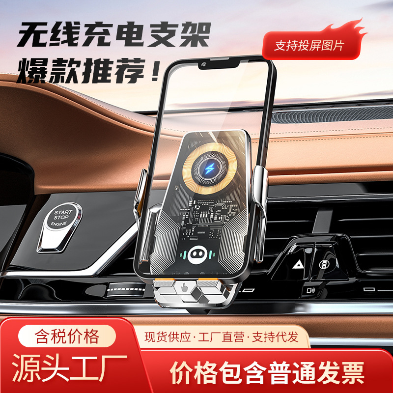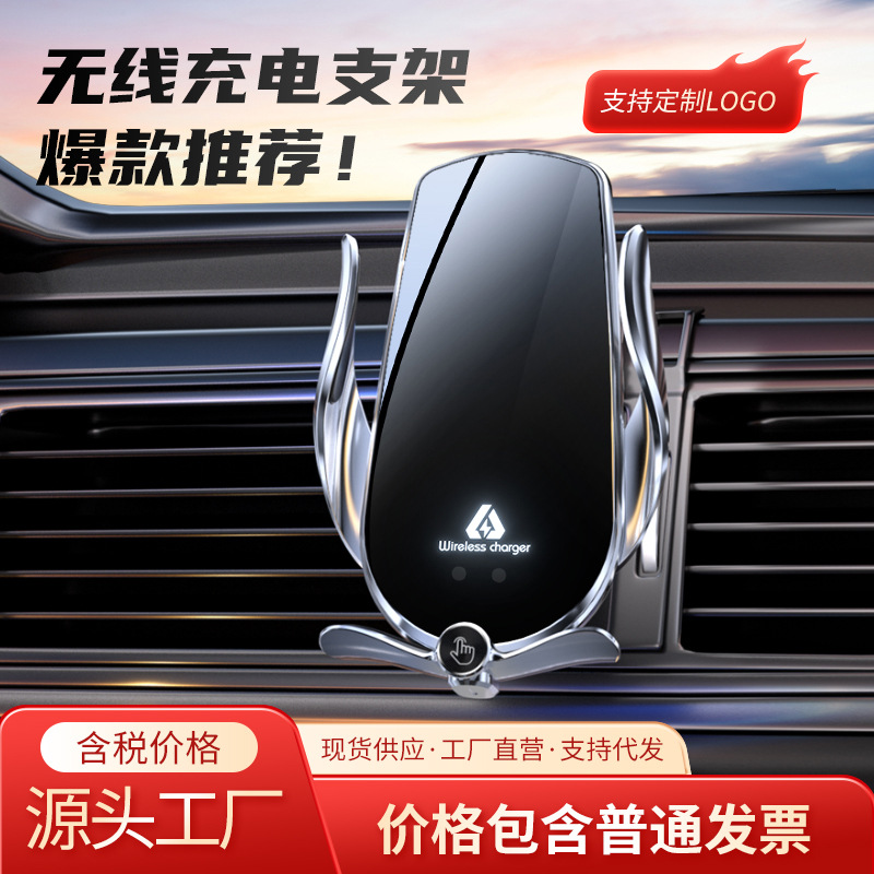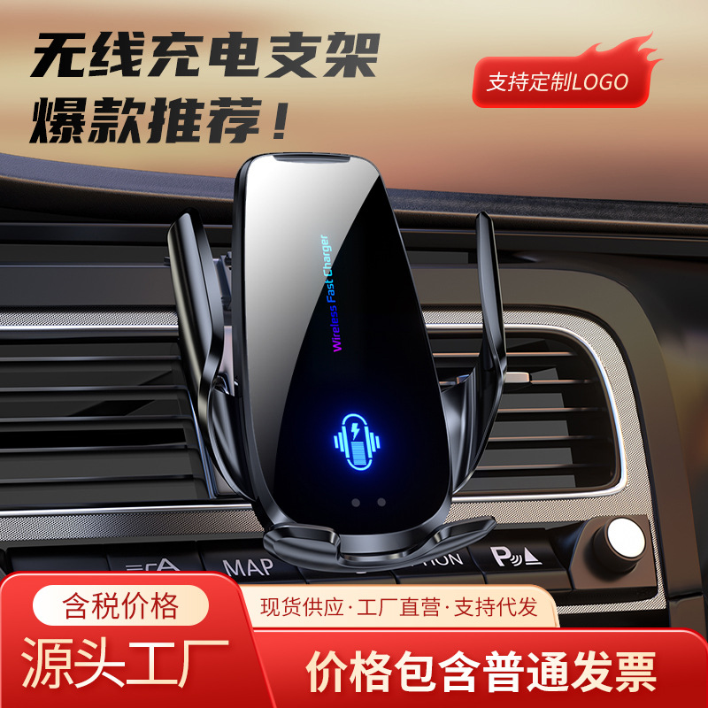 源工場車載携帯電話スタンド赤外線自動開閉15w無線充電カラーロゴ自動車用品