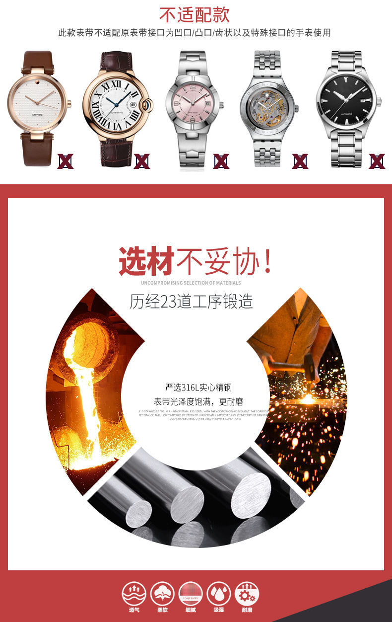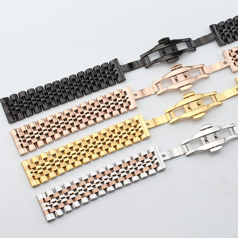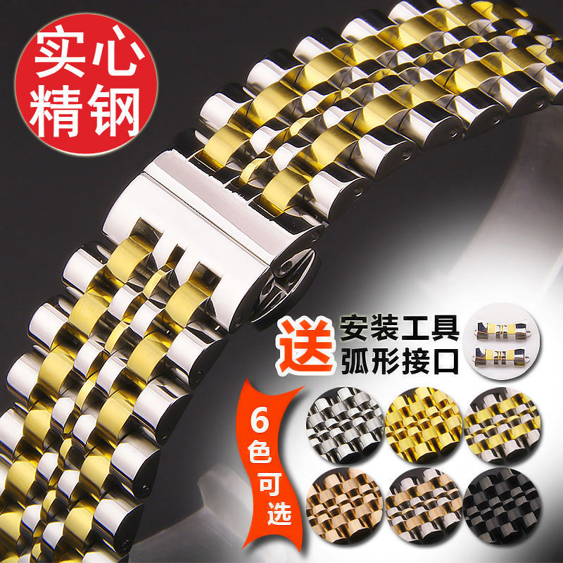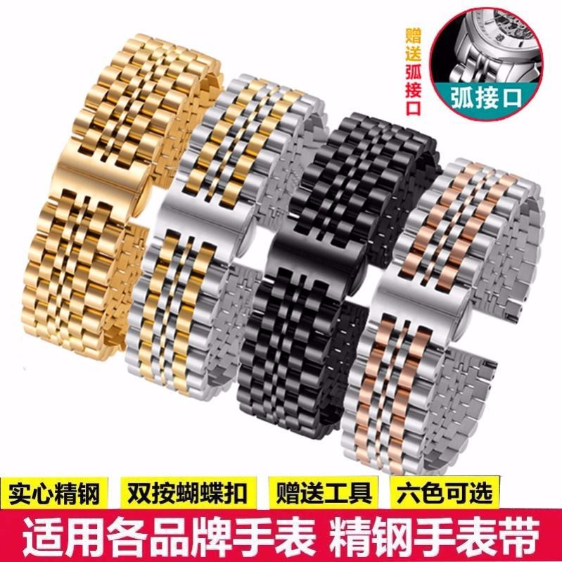 精鋼時計バンド男性鋼帯共通各種ブランド腕時計金属中実20蝶双ボタン女性金22mm