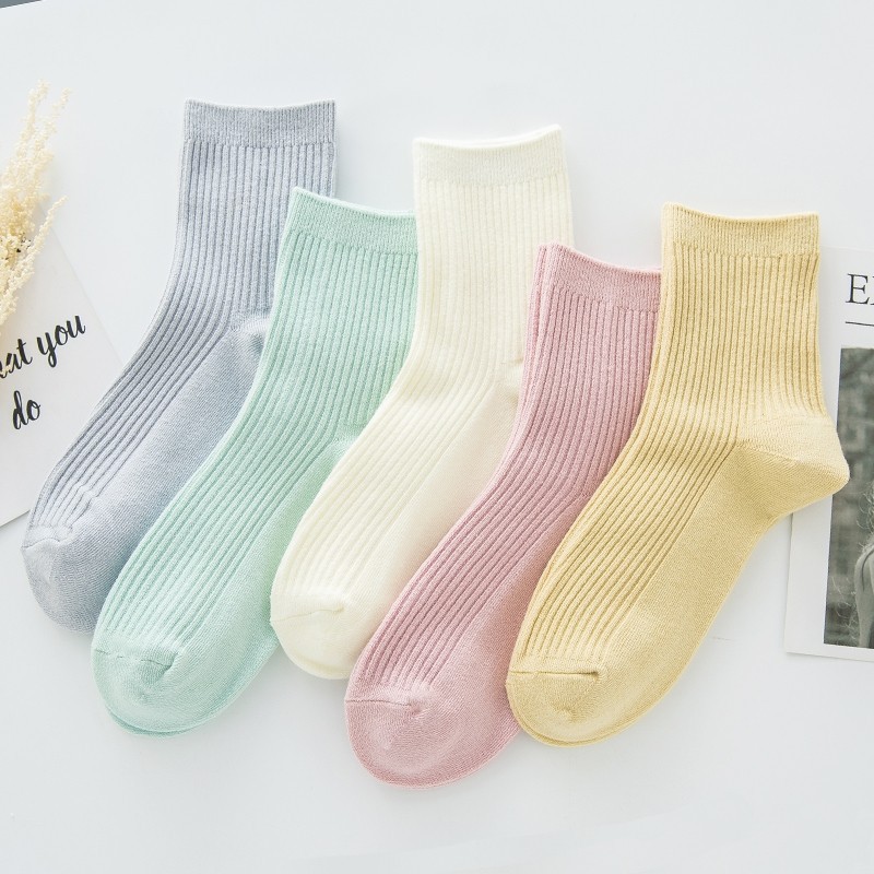 海怡娜靴下女性中筒秋冬女性靴下女性綿靴下日系純色キャンディー色靴下