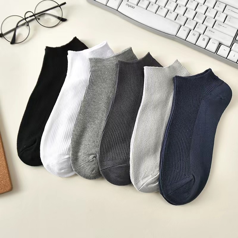 Haiyina 無地綿靴下メンズ靴下秋と冬消臭と吸汗性春スポーツ白靴下黒と白のショートチューブ夏ボート