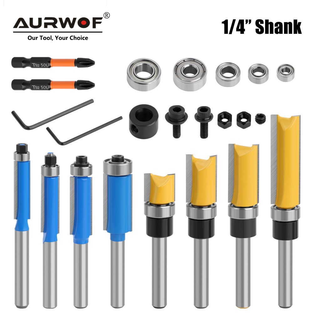 8柄三件套木工直刀 仿形修边刀带轴承锣机开槽木工铣刀
