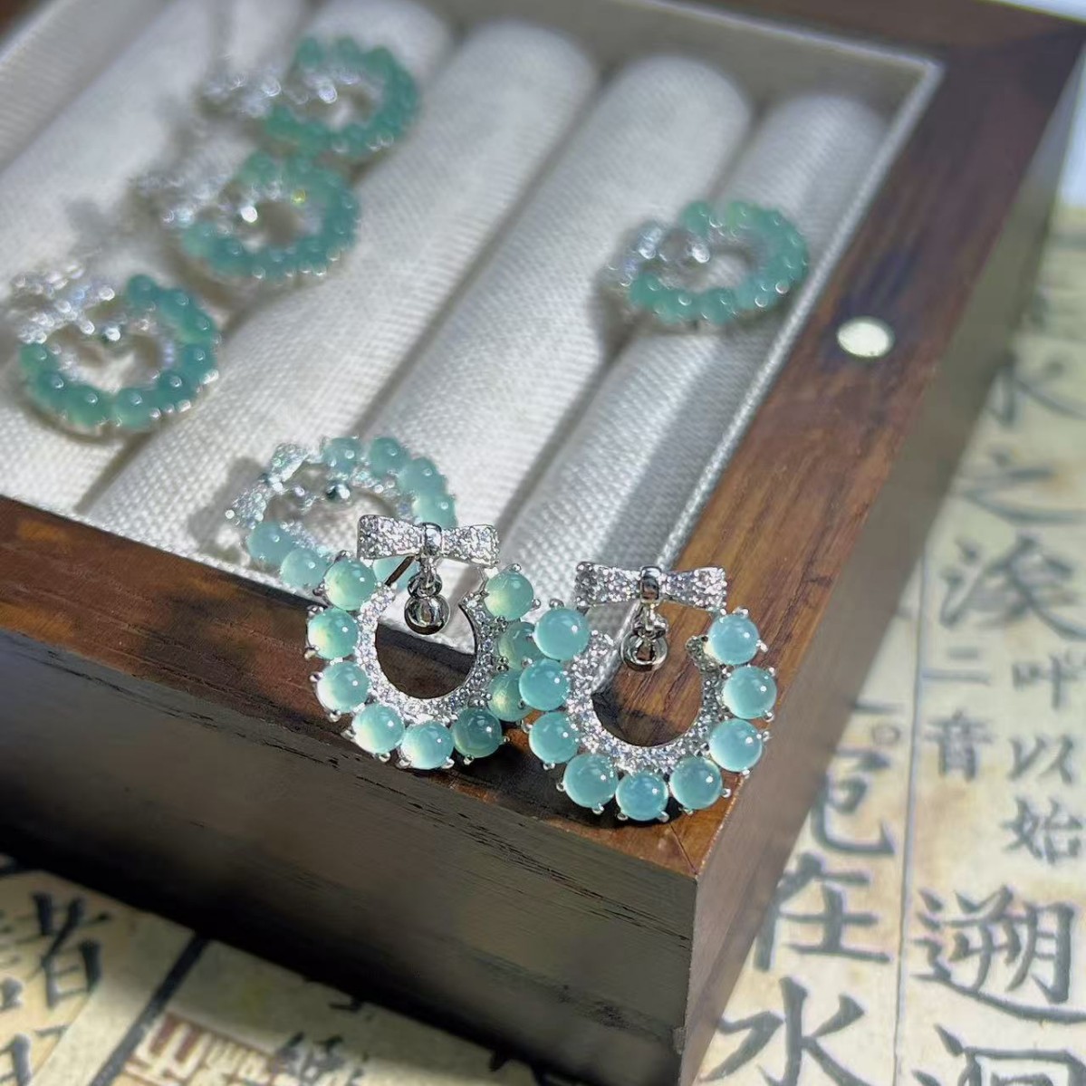小さな電球の新しい中国式の氷の種の天然の青い水の翡翠の陽の緑は女性のタイプのイヤリングを象眼します。