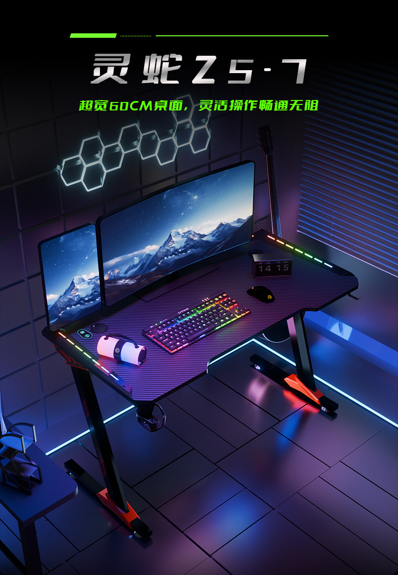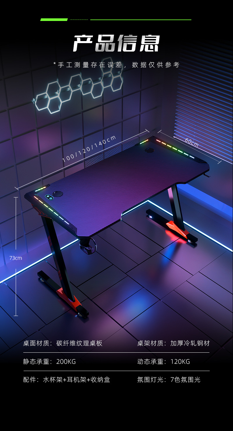 メーカークロスボーダー炭素繊維RGB電気競争テーブル家庭用オフィス発光ネットカフェコンピュータゲームテーブル卸売り
