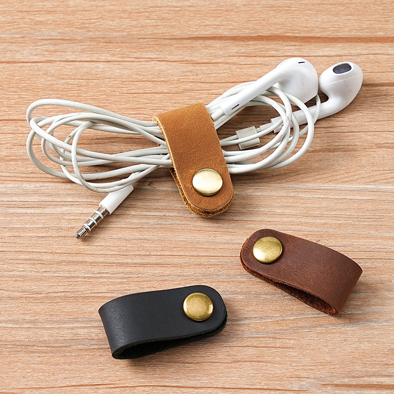 ユニバーサルデータケーブルタイ、クレイジーホースレザースナップヘッドフォンケーブルオーガナイザー、固定された絡み防止コンピュータHDMIケーブルハブ