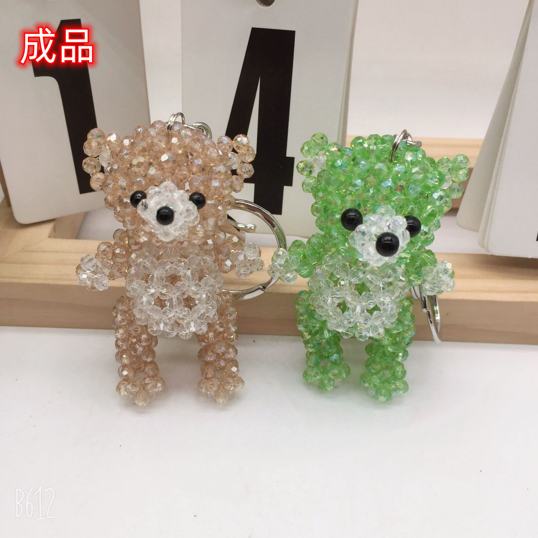 Diy手作りビーズハイライト水晶ベル熊吊り足熊完成品創意編みキーホルダーバッグ掛け飾り