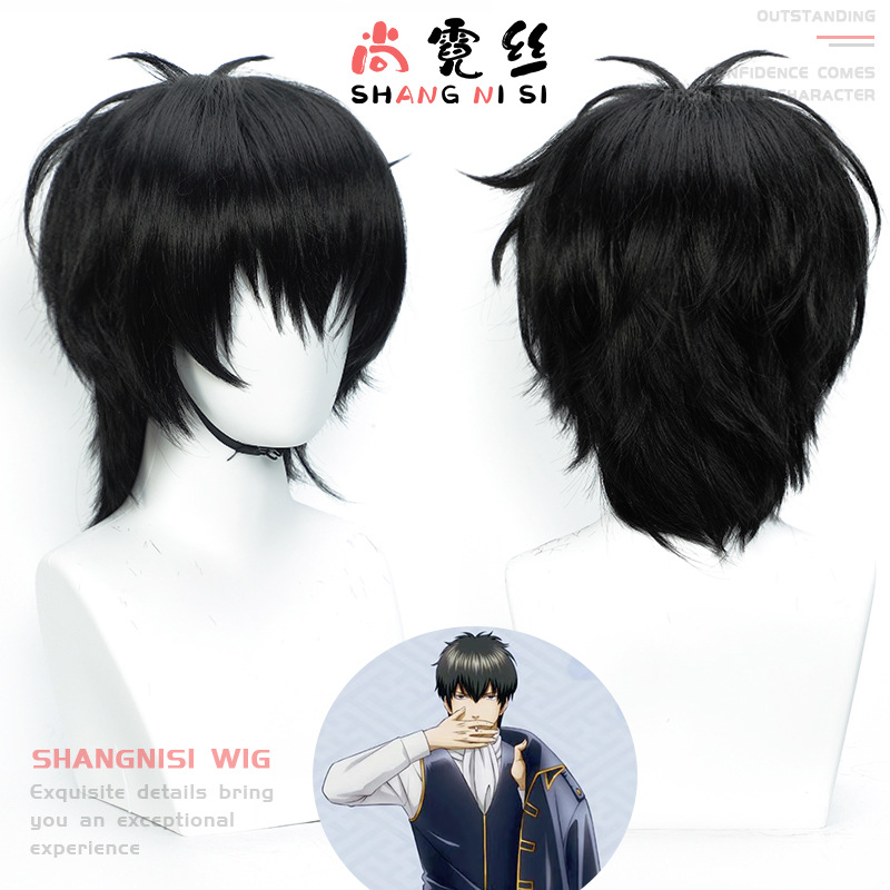 【尚糸】銀魂土方十四郎cosかつらは男性のショートヘアの黒い毛をつけて反り返っています。
