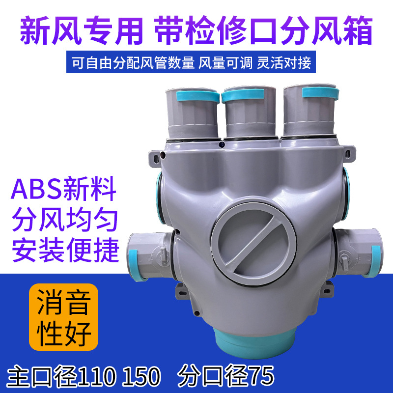 新風システムABS分風箱消音静圧箱点検口付きPEパイプ新風システム部品分風箱