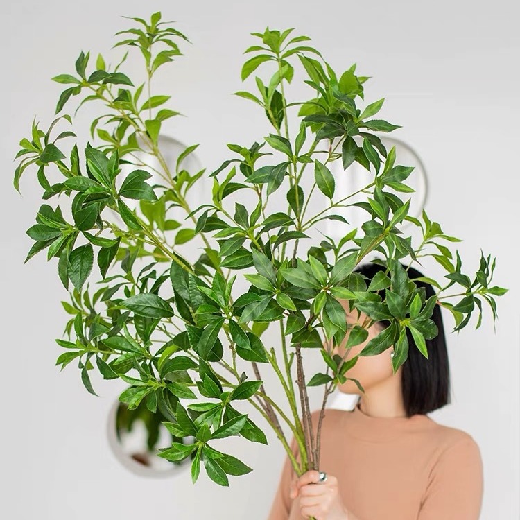 造花月桂の葉、キンモクセイの葉、人工緑植物、偽の枝、金桂の葉、庭園造園装飾、フラワーアート装飾品